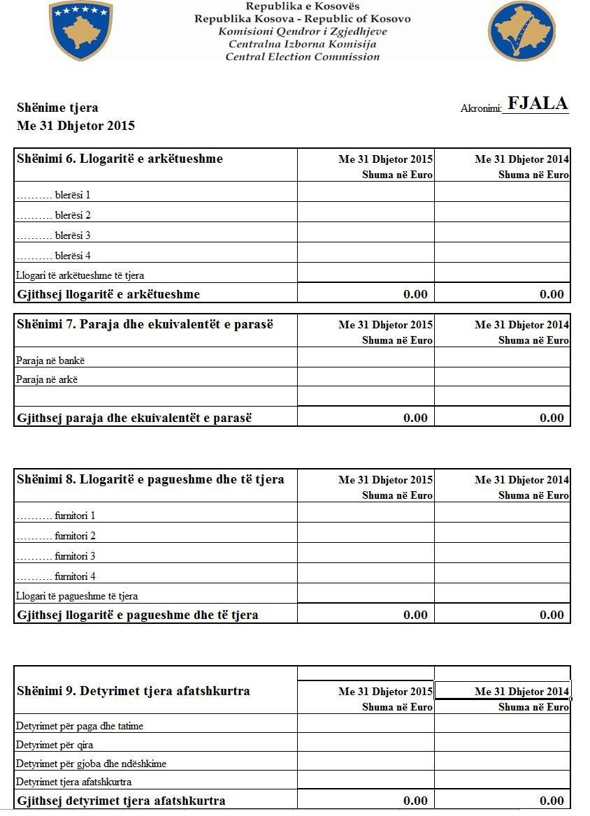 Partia FJALA që të jetë sa ma korrekte me qytetarët e Repunlikës së Kosovës iu paraqet Strukturën dhe Pasyrat e të ardhurave financiare të cilen e kemi raportuar edhe KQZ-në.