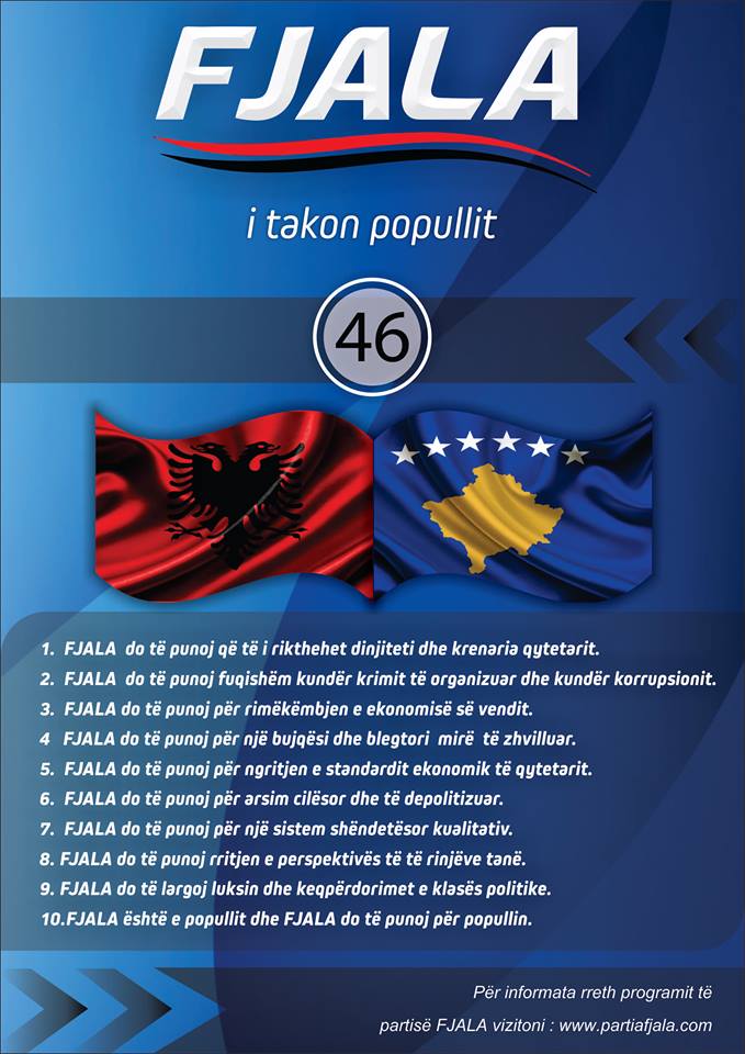 26 Shtator, 2017 by Partia FJALA FJALA i takon popullit, dhjetë pikat e saj për zgjedhjet lokale 2017 Prishtinë, 24.09.2017