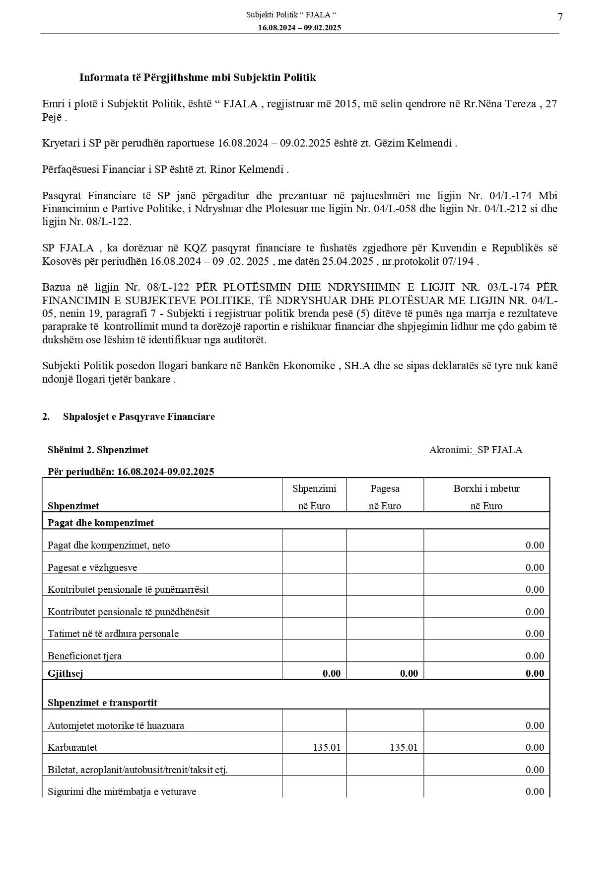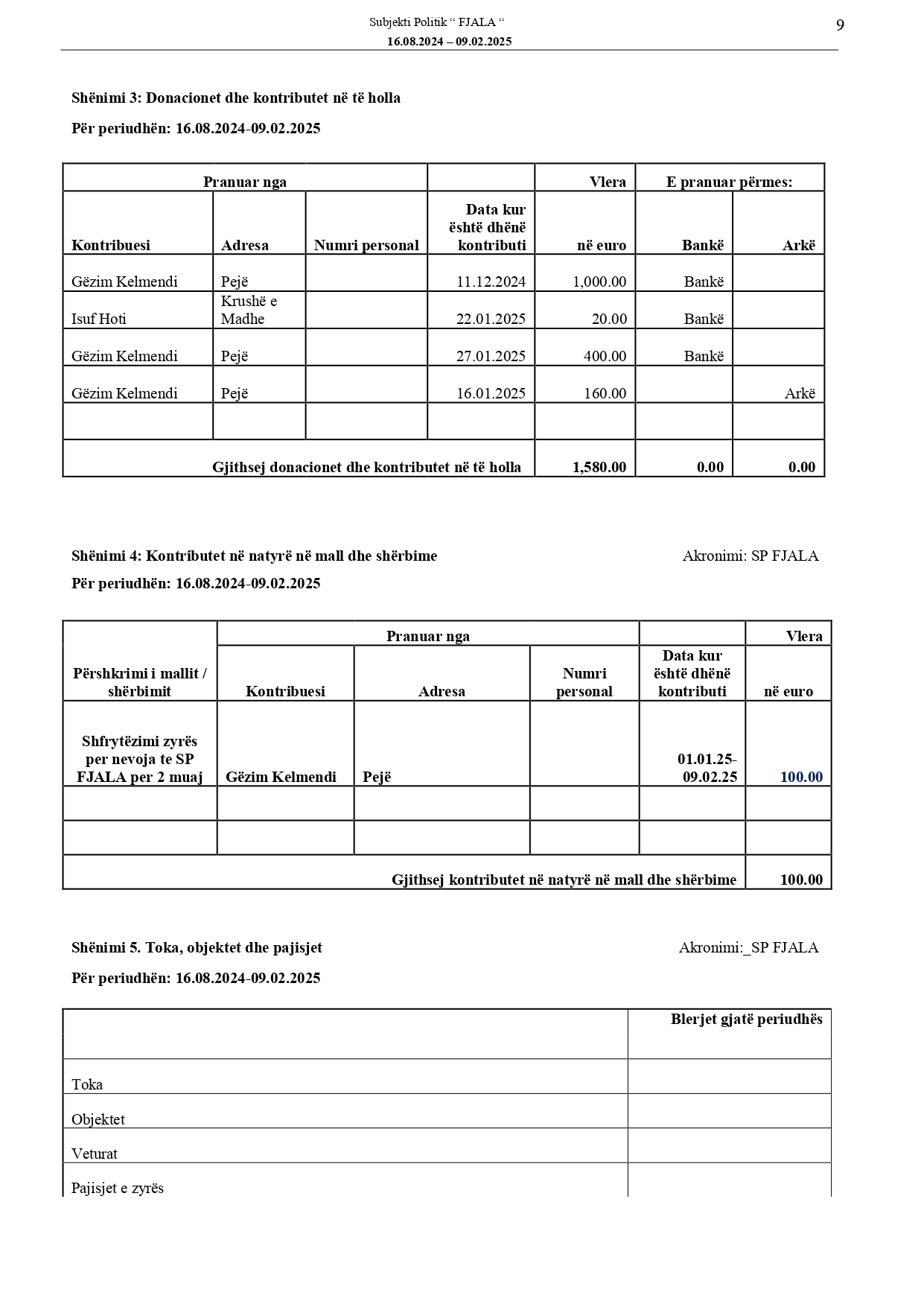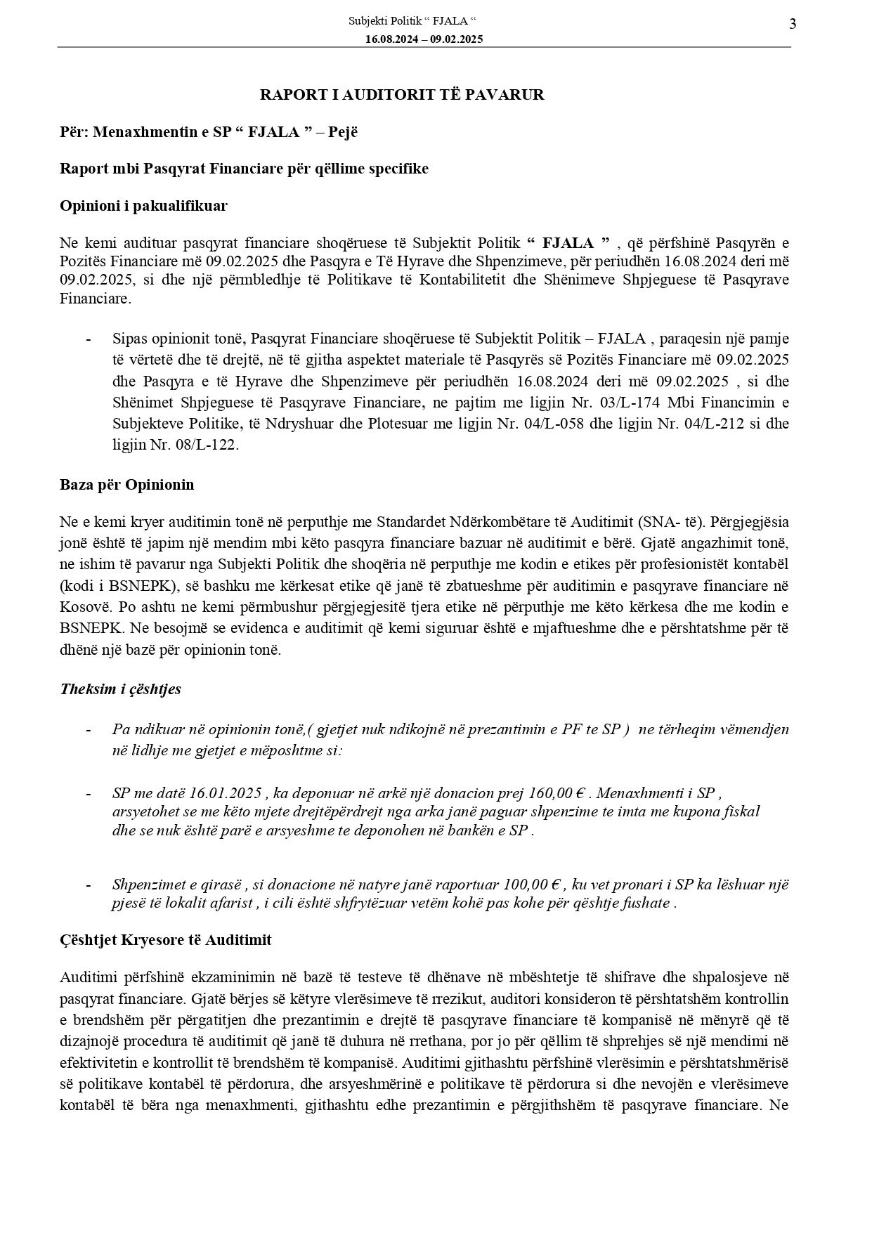 Raportet e audituara të deklarimit financiar të fushatës zgjedhore të subjekteve politike për Zgjedhjet për Kuvendin e Kosovës, 9 shkurt 2025