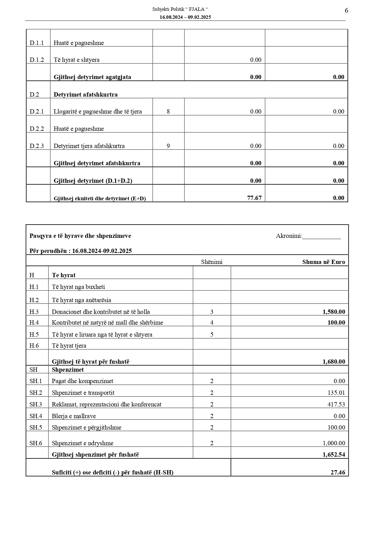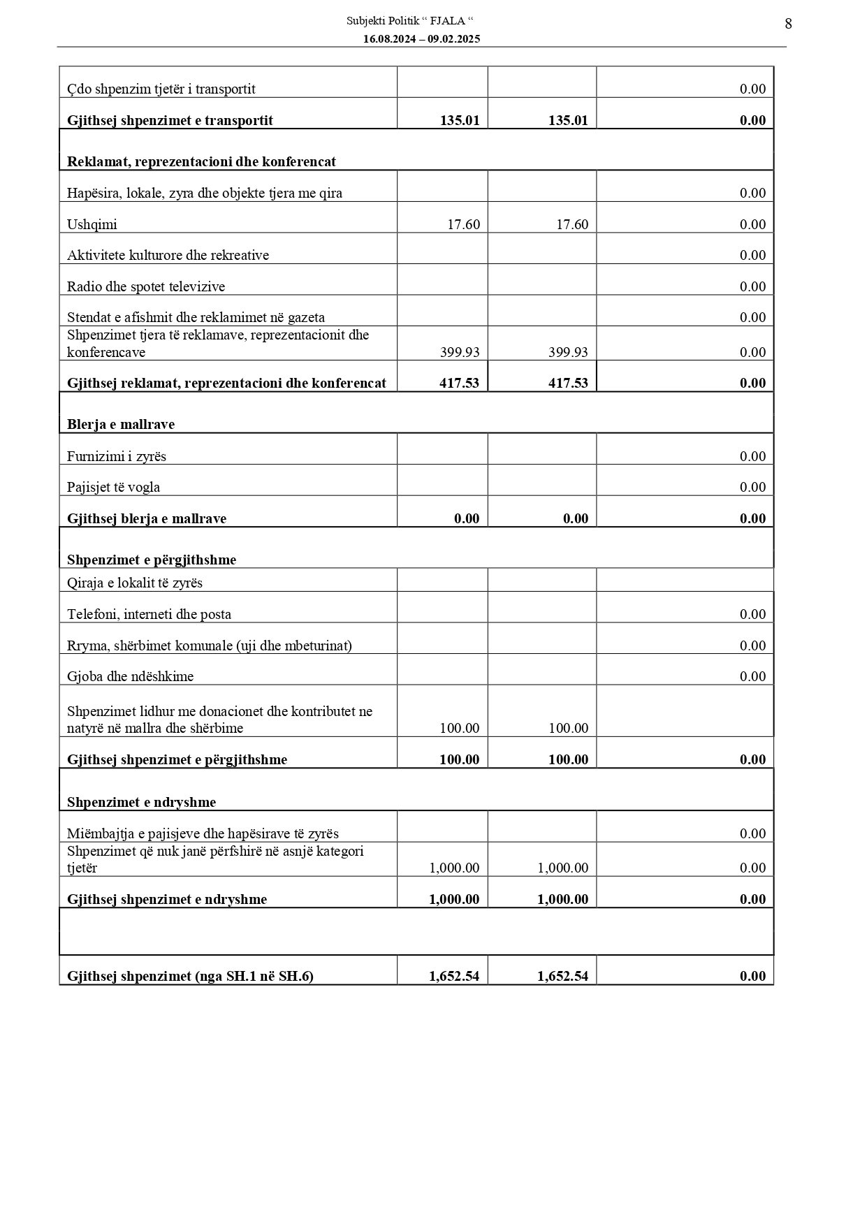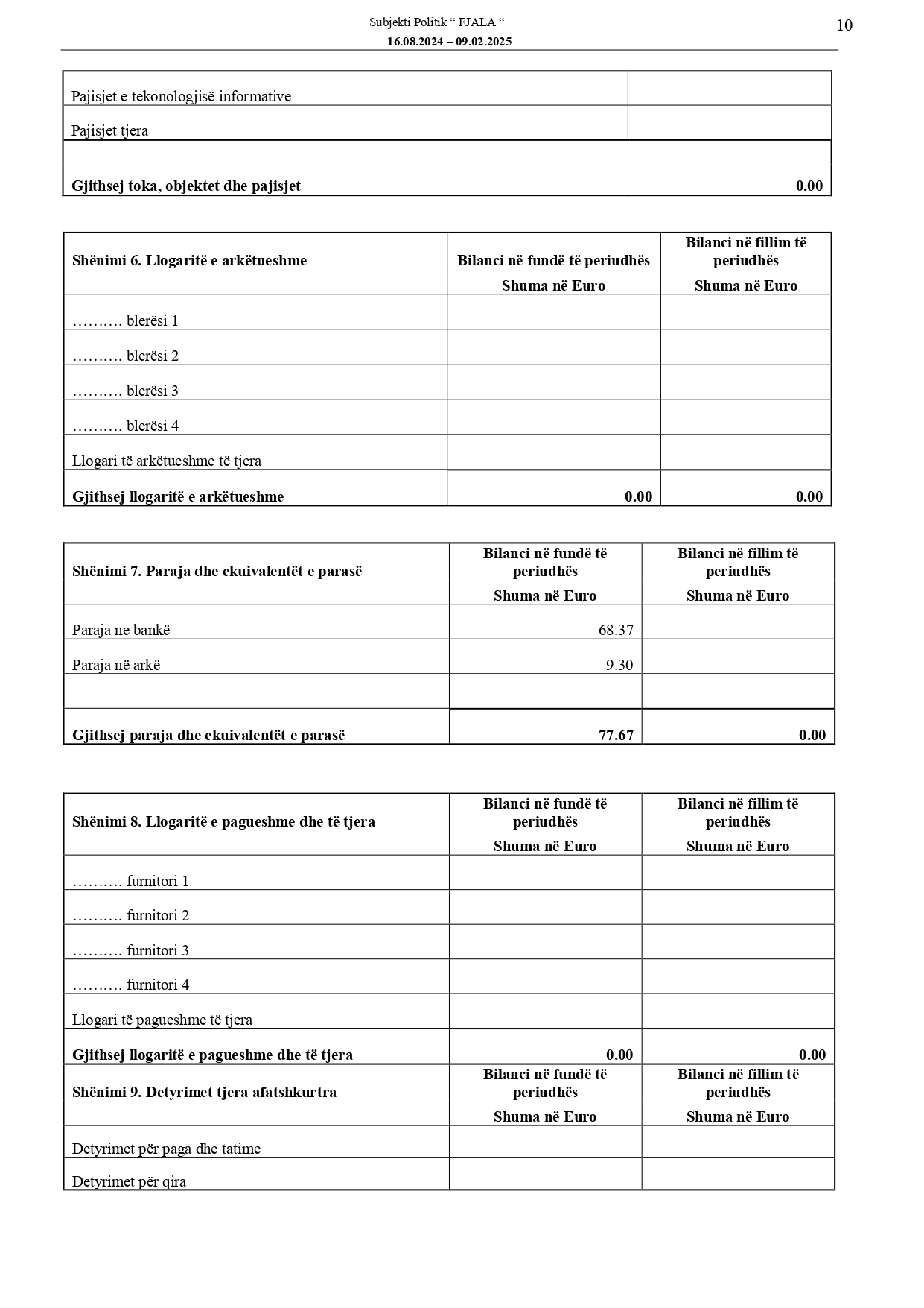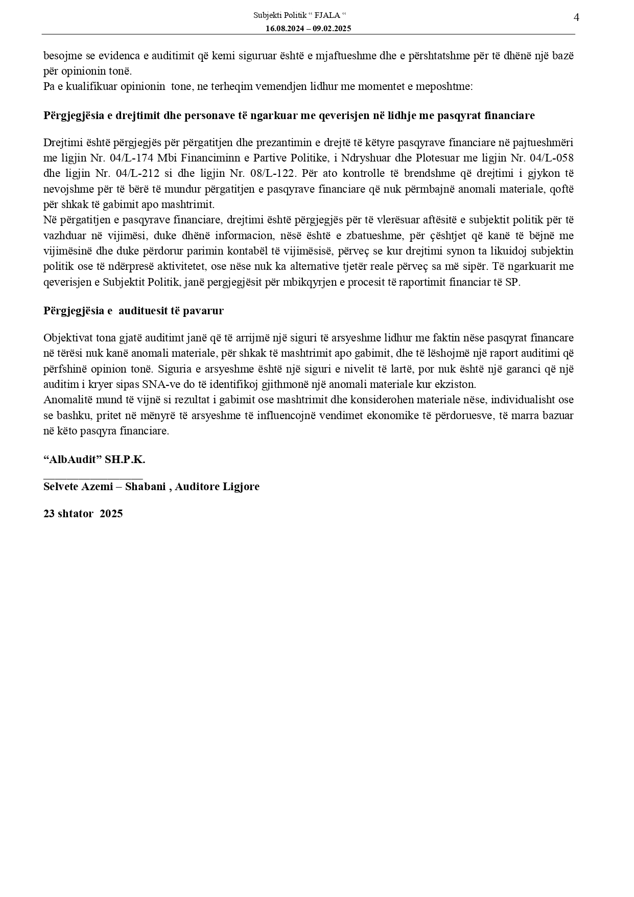 Raportet e audituara të deklarimit financiar të fushatës zgjedhore të subjekteve politike për Zgjedhjet për Kuvendin e Kosovës, 9 shkurt 2025